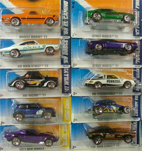 In 2011, Mattel issued some models on a modified blister card that had a "Green Lantern" movie promo space at the top. This does not add a premium to the model. (Click here for a pic). Also issued as a Target exclusive in 2011 were bonus "Silly Bandz" at the bottom of the blister (pic). Three Wal*Mart exclusives included License Plates (pic) at the bottom of the blister, windshield banners (pic) that said "Hot Wheels", and Redline wheels (pic) on select cars noted below. Quoted values are for CARDED, NM examples. Cards less than NM will obviously command a lesser value than listed, depending on overall condition. Note that the NCHWA utilizes a pricing method called "Star Value©." Instead of specific dollar values, each car will be assigned a Star Value© to indicate rarity and potential price range. There are simply too many variables to place a "set" value on any model, so a range will be used instead to indicate where that particular model may fall on the secondary price scale. A +/- indicates where on that scale the value is approximated, while a number by itself would indicate the value falls in the middle of the Star Value. This is also an easy quick-glance method to determine rarity; the higher the number, the rarer the car. The value chart will be placed at the bottom of each page. |