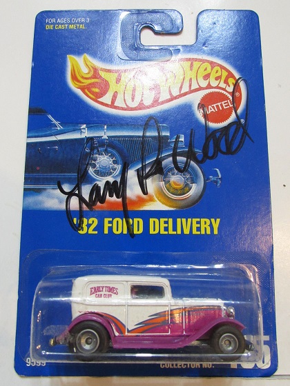 a) Red body with red, white and blue flag tampo on hood and sides. Gold Hot Ones b) Same as "a", but with Ultra Hots wheels (1991) c) Same as "a", but with Blackwall tires d) Black body with red, yellow and blue tampo. Plastic base e) Same as "d", but with painted metal base (1991) f) Same as "d", but with unpainted metal base (1991) g) Same as "f", but with Ultra Hots wheels (1991) h) Same as "f", but with chrome Hot Ones wheels (1992) |