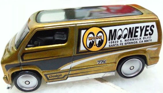 a) Spectraflame gold body with "Mooneyes" deco, Malaysia base and Real Riders |