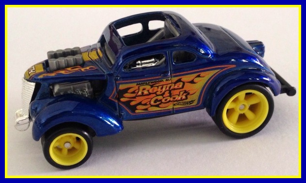 a) Metallic blue body with "Reyna & Cook" deco and yellow hub Real Riders |