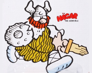 a) Brown body with white roof, "Hagar the Horrible" deco and chrome hub whiteline Real Riders |