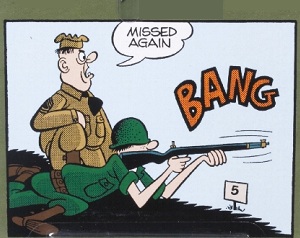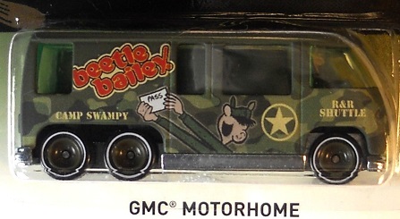 a) Green camouflage body with "Beetle Bailey" deco, metal base and brown hub whiteline Real Riders |
