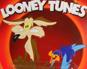 a) Tan body with Wile E. Coyote & Road Runner deco, metal base and chrome hub Real Riders |