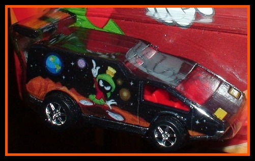 a) Black body with red interior, Marvin Martian deco, metal base and 6-Spoke Real Riders |