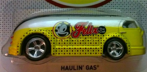a) Yellow body with red roof, "Captain Caveman" deco and chrome hubs with Redline Real Riders |
