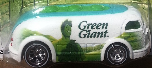 a) White/aqua body with green windows, "Green Giant" deco and chrome hub whiteline Real Riders |