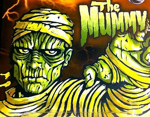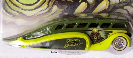 a) Green/yellow body with "Creature From The Black Lagoon" deco and chrome hub yellow-wall Real Riders |