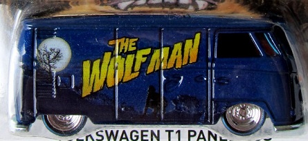 a) Dark blue body with "The Wolfman" deco and chrome hub blueline Real Riders |