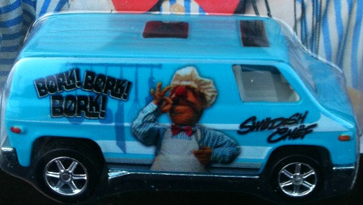 a) Pink body with white roof, "Kermit" & "Miss Piggy" deco, and gold hub whiteline Real Riders |