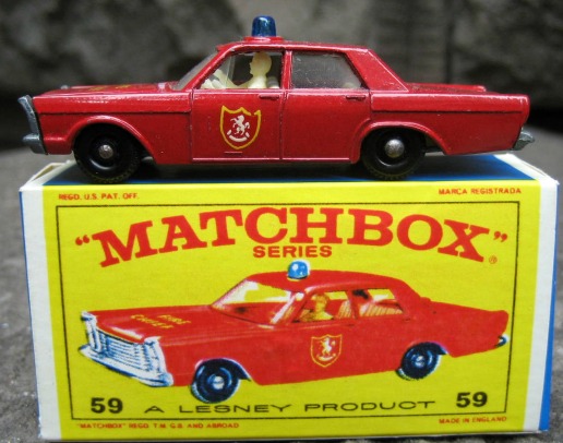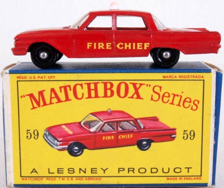 a) Red body with white dome light, "Fire Chief" deco and Black Plastic Wheels