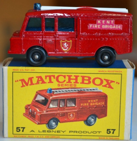 a) Red body with "Kent Fire Brigade" deco and Black Plastic Wheels (+ white ladder)