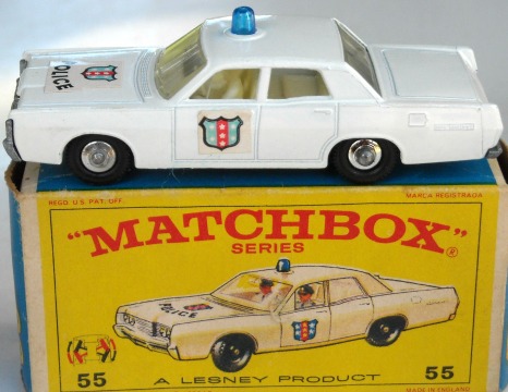 a) White body with shield deco, red dome light and Black Plastic Wheels