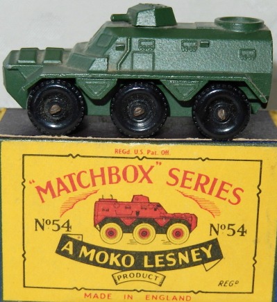 a) Blue body with rear window, red/white deco and Black Plastic Wheels