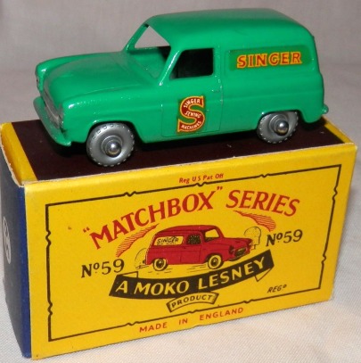 a) Light-green body with "Singer" deco and Grey Plastic Wheels