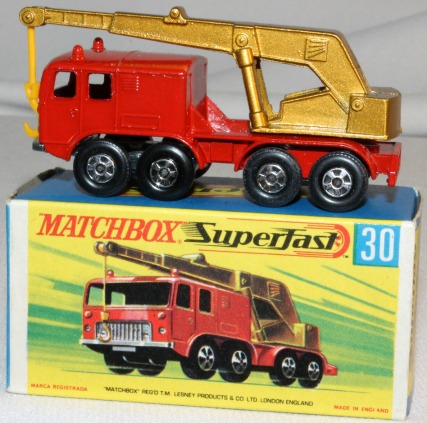 a) Red body with gold boom, yellow hook and SuperFast wheels