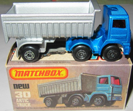 a) Blue cab with red windows, silver dumper and SuperFast wheels