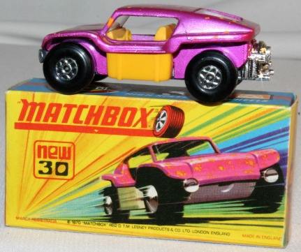 a) Metallic purple body with yellow/black stripe decal and SuperFast wheels