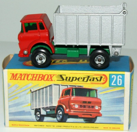 e) Red cab with grey dumper and SuperFast wheels