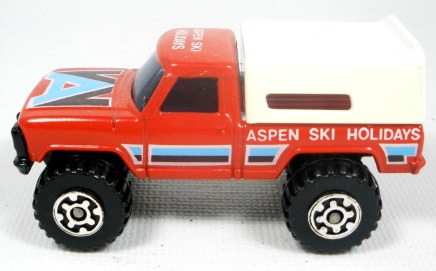 a) Red body with white shell, "Aspen Ski Holidays" and SuperFast wheels